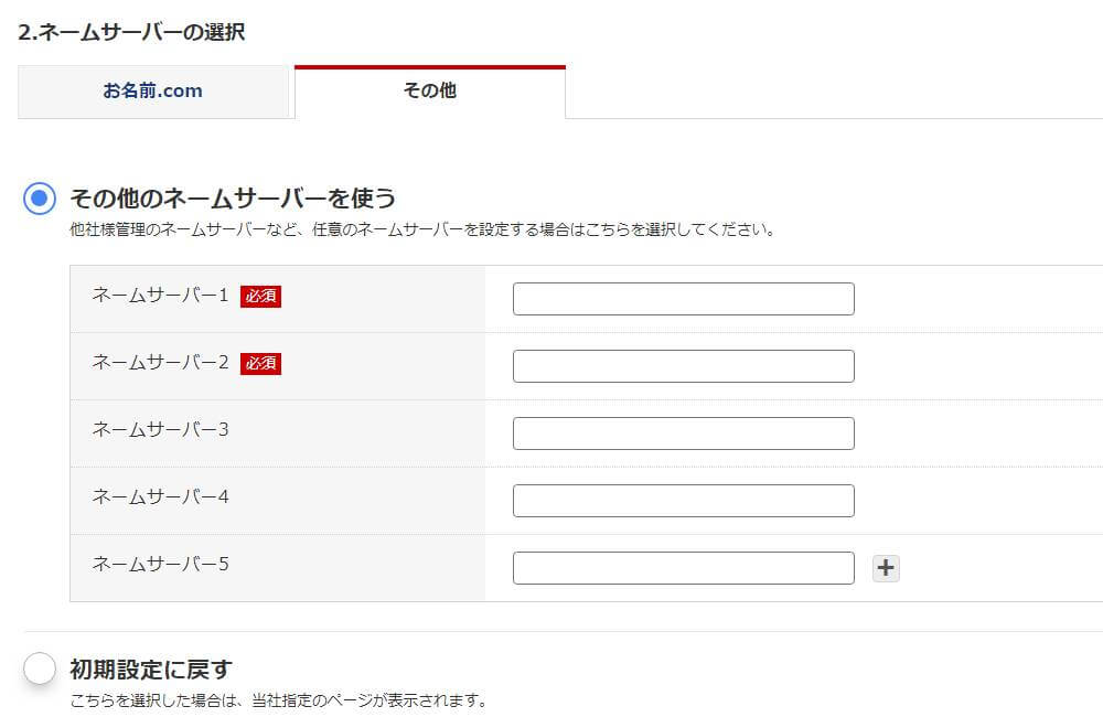 【2.ネームサーバーの選択】→【その他】を選択します。